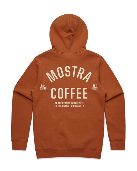 Expertly crafted with high-quality materials, Mostra's signature apparel collection is designed for ultimate comfort. This clay-colored Team pullover sweater features inset sleeves, a kangaroo pocket, a lined hood, tonal shoestring drawcord, sleeve cuff ribbing, and preshrunk to minimize shrinkage for a sleek and functional look.